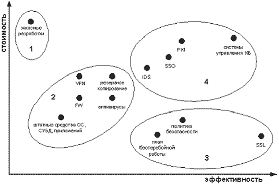 уровень). При внедрении различных технологий и средств защиты часто возникают вопросы. Что внедрять в первую очередь, систему обнаружения вторжений или PKI инфраструктуру? Что будет более эффективно? Стивен Росс, директор Deloitte&Touche, предлагает следующий подход для оценки эффективности отдельных мер и средств обеспечения ИБ.